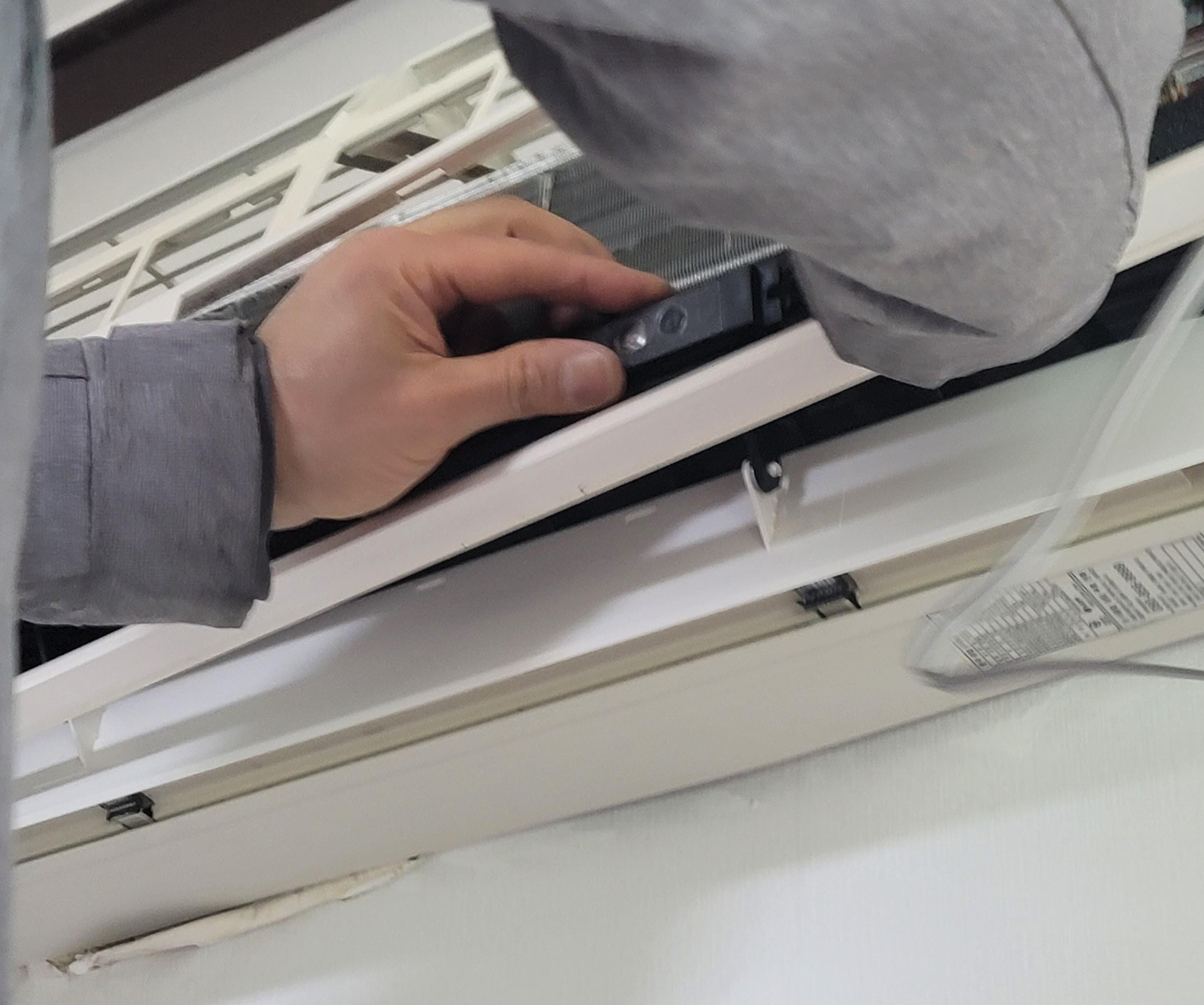 에어컨 겉뚜껑을 연 후에 기사님께서 손으로 잡고 계신 저부분이 에어컨 센서입니다. 제가 모델명/제품번호 증상 등을 정확히 입력해 놓은 덕분에 부품을 가져왔다고 하셨어요^^ 단종된 부품도 있다고도 하셨습니다...ㅎㅎ